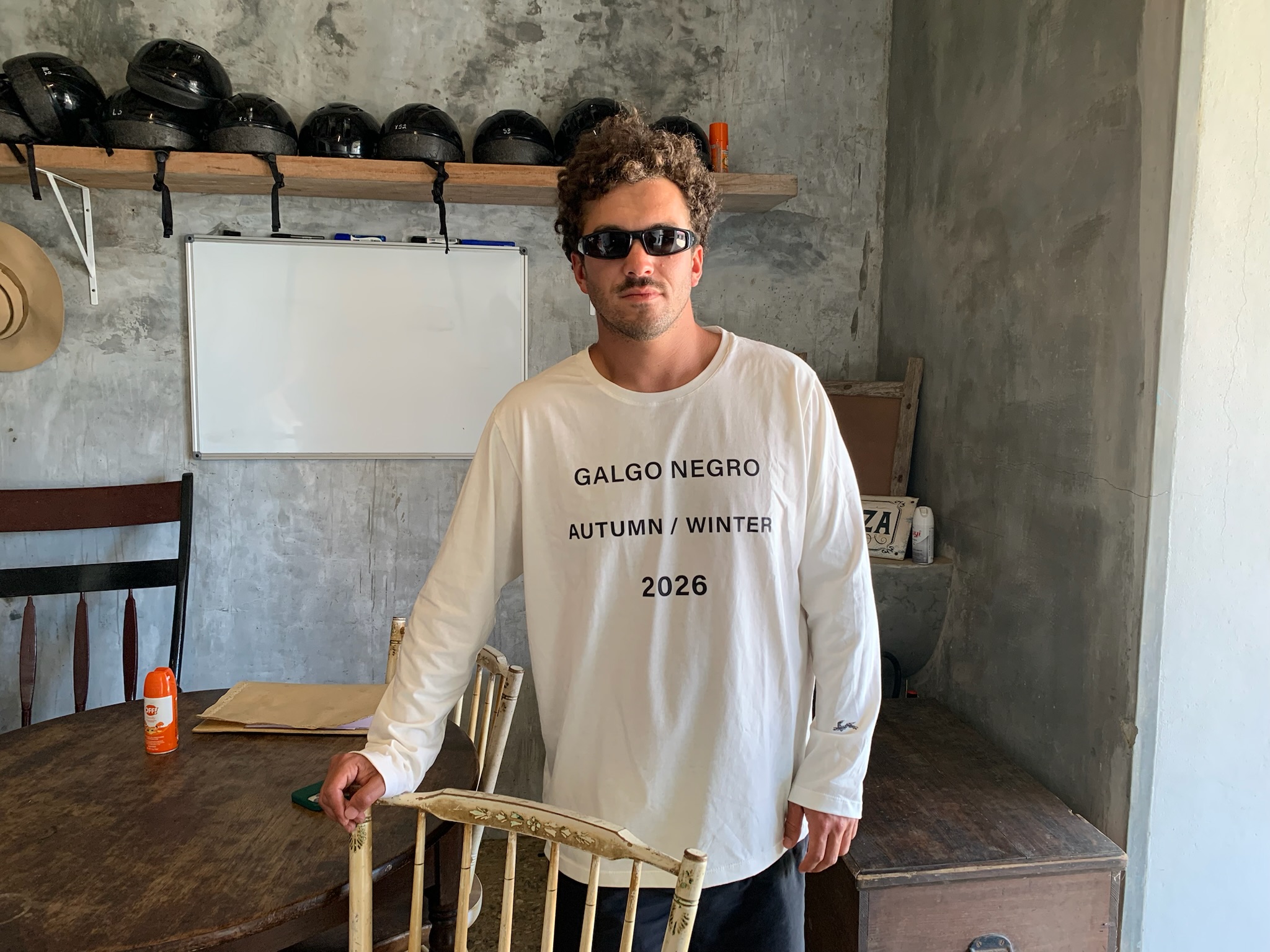 Remera de manga larga en 100% algodón liviano con estampa frontal “Galgo Negro Autumn / Winter 2026” y bordado el galgo en la manga.